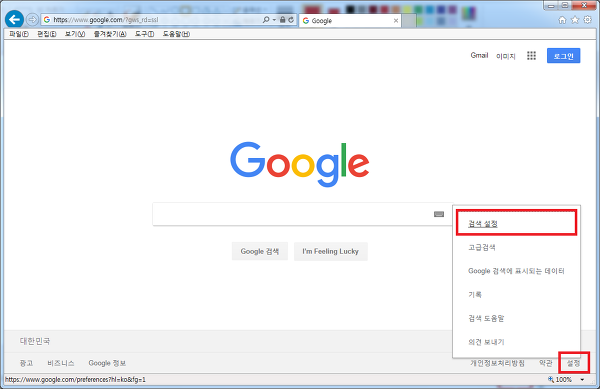 구글에서 우측 하단에 있는 설정-검색설정 메뉴에 들어갑니다.