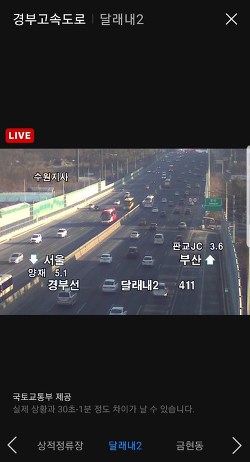 CCTV를 누르시면 교통상황을 보실 수 있고, 다음구간에 있는 카메라도 연속해서 볼 수 있어 편리합니다.