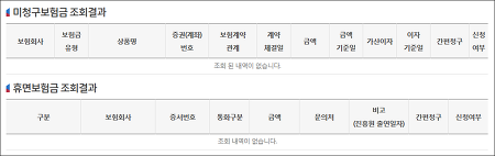 기본적인 보험가입내역은 물론, 미청구보험금, 휴면보험금 조회가 됩니다.