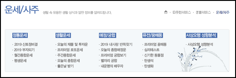 바로 신한생명에서 제공하는 운세/사주 코너 입니다.